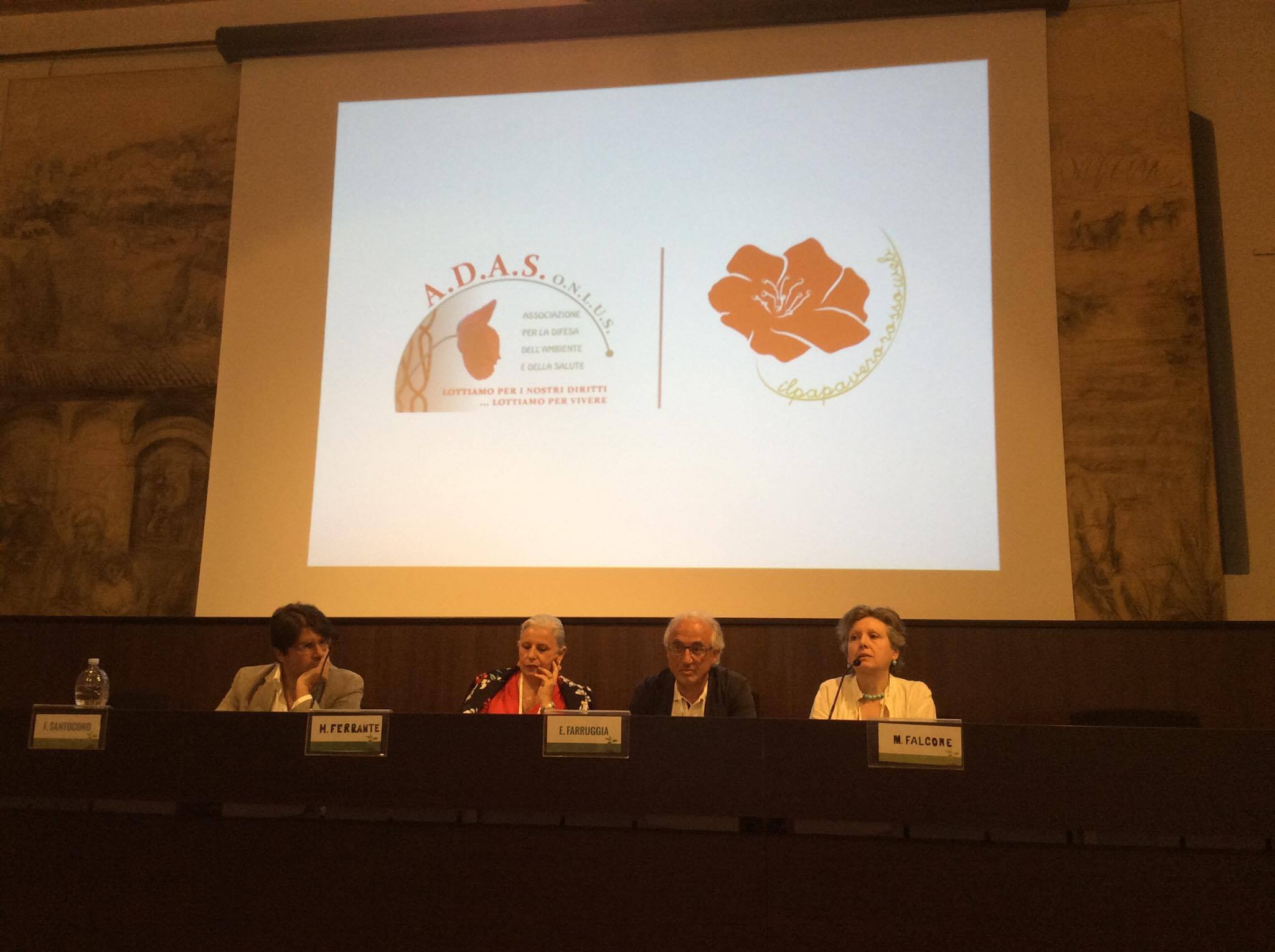 Dopo l'apertura dei lavori di Marisa Falcone, presidente di A.D.A.S. onlus, che ha invitato a riflettere su come ambiente e salute siano strettamente correlati é intervenuta la Prof.ssa Margherita Ferrante, che ha parlato di come lo sviluppo tecnologico pur apportando benefici e progressi importanti ha generato l'immissione nell'ambiente, e di conseguenza nella catena alimentare, di sostanze xenobiotiche non compatibili con i processi biologici, sostanze queste che arrivano quotidianamente sulle nostre tavole. I bambini sono maggiormente esposti poiché in relazione alle caratteristiche staturo-ponderali assumono più sostanze tossiche degli adulti. Ha dedicato particolare attenzione alla questione dei pesticidi, per i quali l'Europa spende 120 milioni di euro all'anno. Ha affermato che il 70% delle patologie si prevengono con la eliminazione dei fattori di rischio ambientale. Ha concluso con un monito: "Ogni malattia che incontrerete nella vostra vita, dipende anche dalla vostra alimentazione e dall'ambiente che vi circonda".