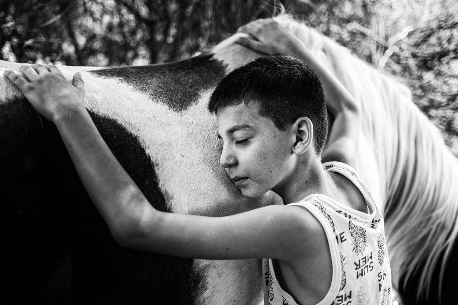 Le immagini raccontano il cavallo non come simbolo di sfruttamento e illegalità, ma come creatura sacra, corpo libero in movimento, strumento di riscatto morale e sociale. Le fotografie monumentali, stampate su teli che arrivano fino a 9 x 6 metri, sono state installate lungo il cavalcavia che divide in due il quartiere. Un lavoro che nasce dopo una lunga immersione della fotografa Bulaj nei luoghi della legalità e della cura: l’Istituto di Incremento Ippico per la Sicilia e l’ASD Maneggio L’ulivo. Qui il cavallo non è protagonista di corse clandestine, né di macellerie equine, ma creatura luminosa, compagna dell’uomo, simbolo di dignità.