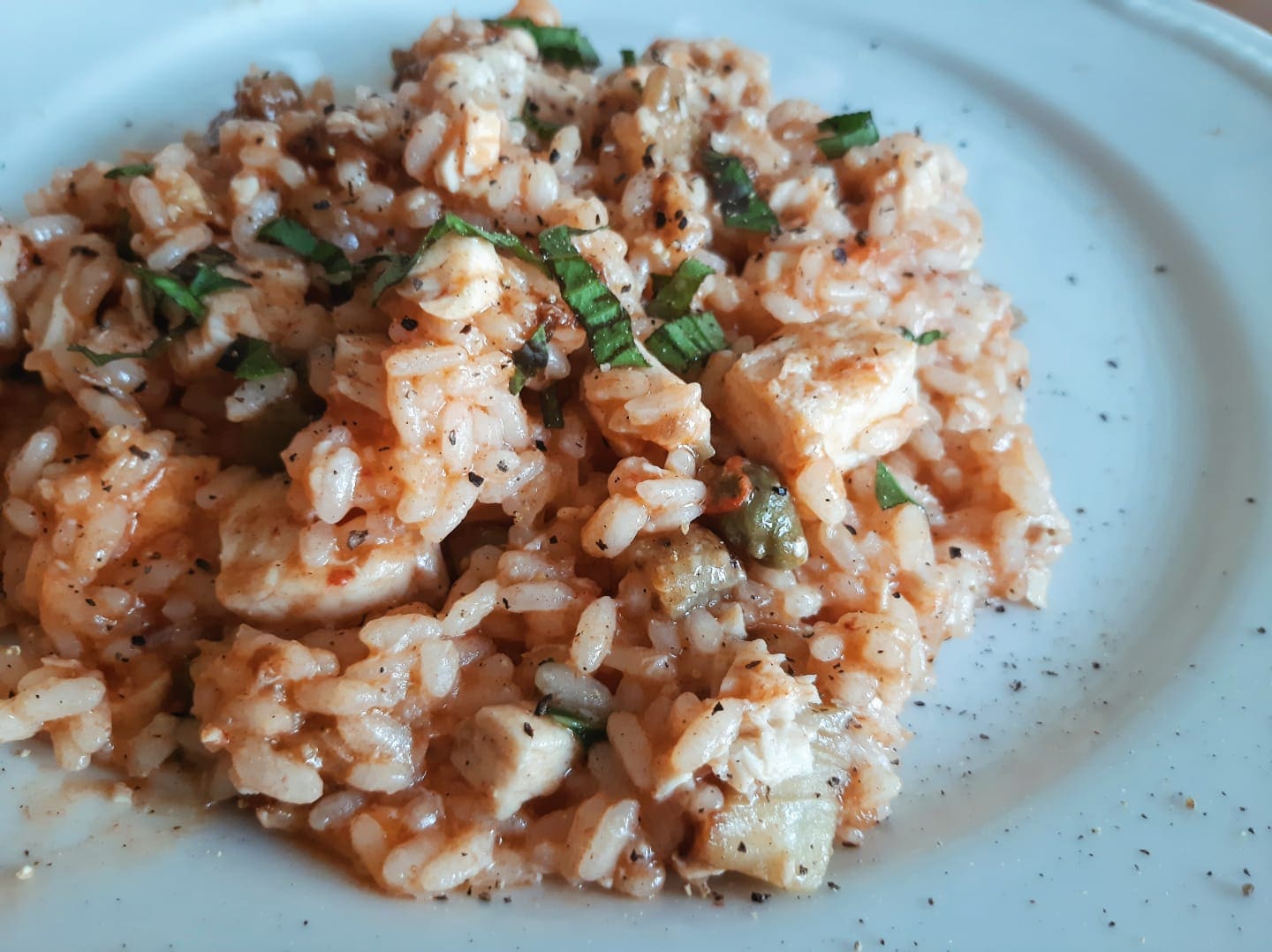 Appena il riso sarà quasi pronto, aggiungete la salsa di pomodoro con il pesce spada ormai cotta, mescolate e, a cottura ultimata, aggiungete le melanzane fritte, il basilico fresco, pepe nero secondo il gusto e ricotta salata grattugiata.