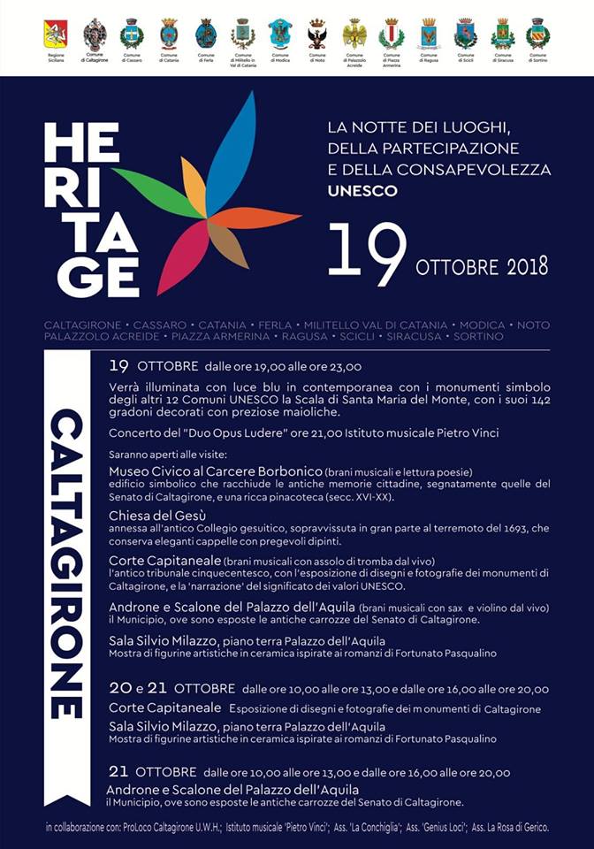 Corte Capitaniale (brani musicali con assolo di tromba dal vivo) l'antico tribunale cinquecentesco, con l'esposizione di disegni e fotografie di monumenti di Caltagirone, e la “narrazione” del significato dei valori UNESCO.