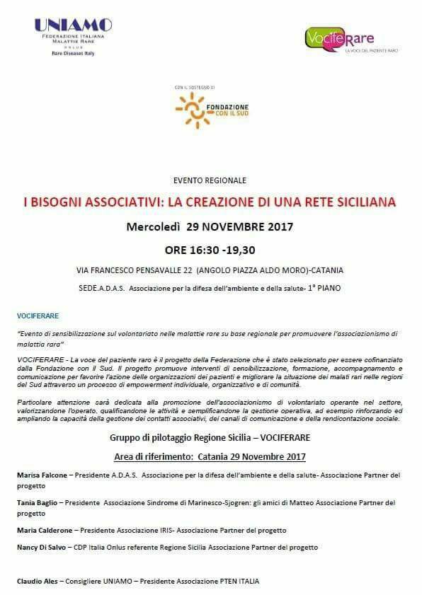 L'evento è riservato alle associazioni che operano nel settore delle malattie rare in Sicilia orientale.