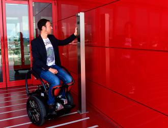 Una carrozzina speciale che consente al disabile di stare all'altezza degli altri grazie a una "seduta" che si abbassa e si alza con la massima facilità. E di cambiare direzione senza usare le mani per metterle su ruote o joystick: molto semplicemente voltando il busto dalla parte desiderata....